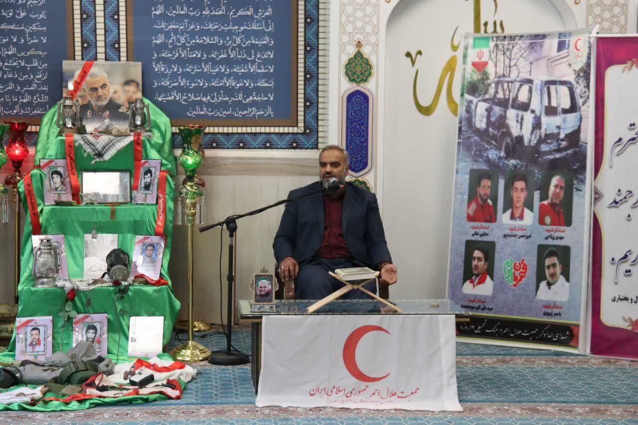 به گزارش روابط عمومی جمعیت هلال احمر استان چهارمحال و بختیاری ؛امروز یک شنبه مورخ ۱۴۰۴/۰۷/۰۶به مناسبت هفته دفاع مقدس و نکوداشت یاد و خاطره شهدا و تکریم همکاران بازنشسته و تجلیل از نجاتگران اعزامی‌به تهران در جنگ ۱۲ روزه، ویژه برنامه ای با سخنرانی سرهنگ کربلایی علیرضا اسماعیلی و قرائت زیارت عاشورا با صدای گرم کربلایی سید کمال زمانیان در نمازخانه ستاد جمعیت هلال‌احمر استان چهارمحال و بختیاری برگزار شد .
