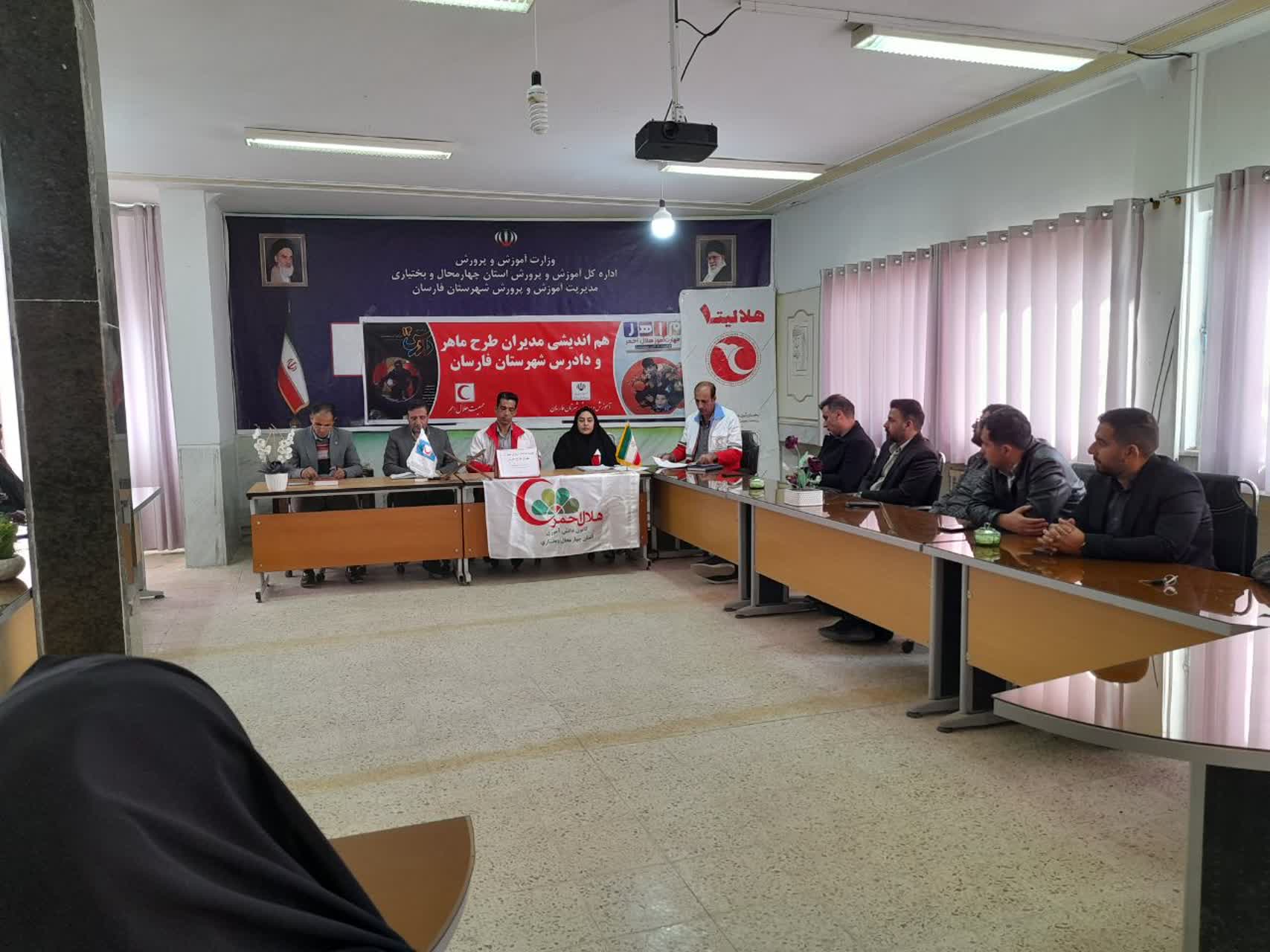 نشست هم‌اندیشی مدیران طرح‌های «دادرس» و «ماهر» شهرستان فارسان با حضور رئیس آموزش‌وپرورش شهرستان فارسان، و پرسنل جمعیت هلال‌احمر استان و شهرستان فارسان برگزار شد.