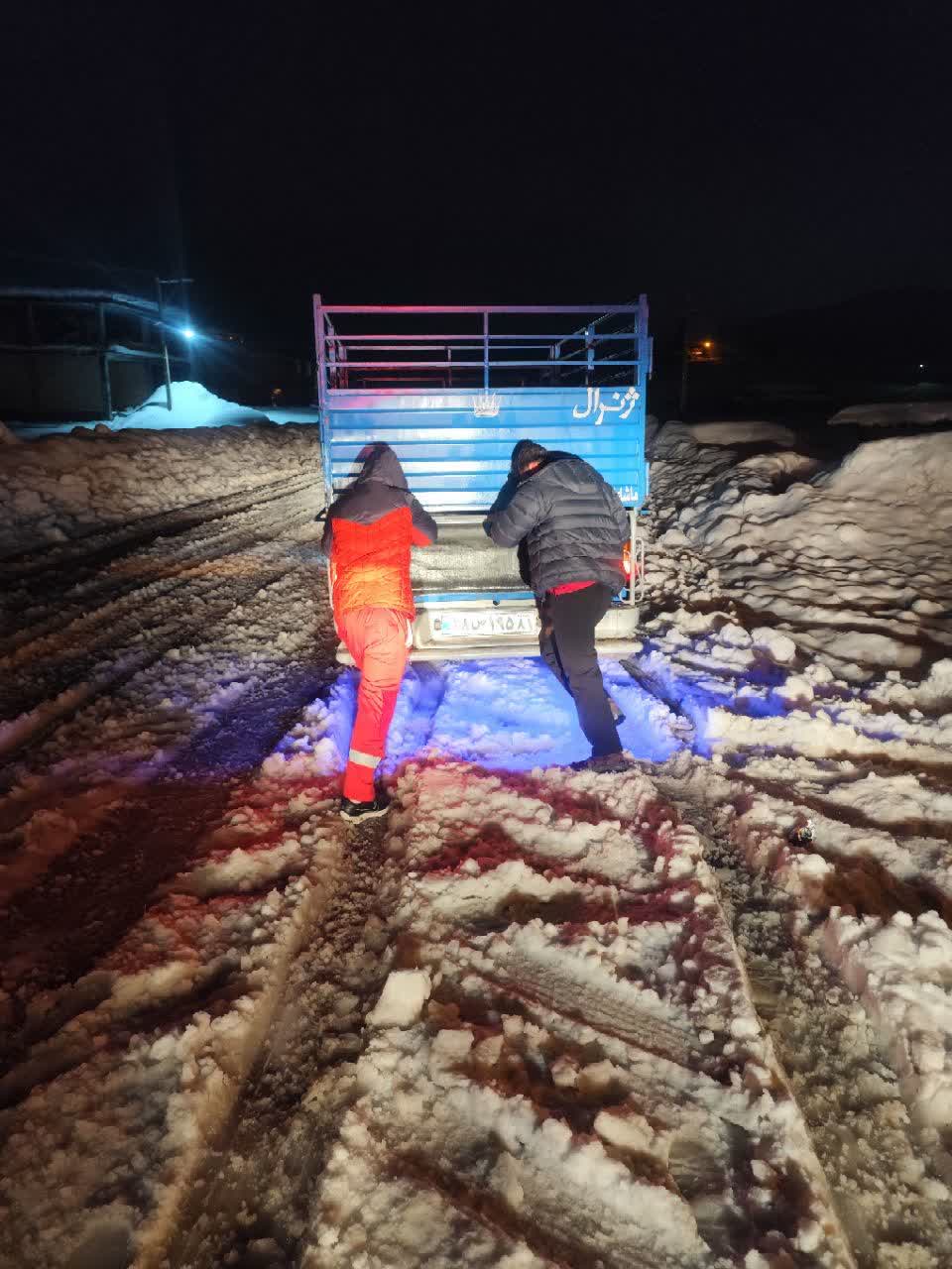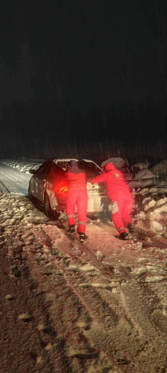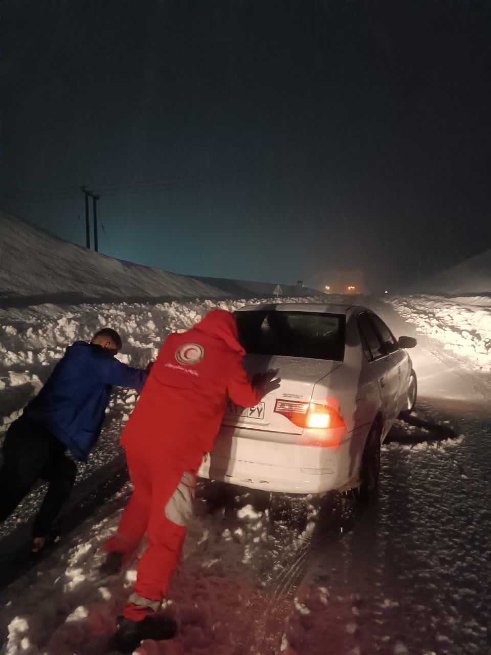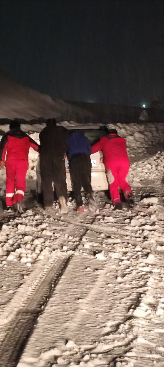 امدادرسانی هلال‌احمر به خودروهای گرفتار در برف و کولاک محور کوهرنگ – اصفهان